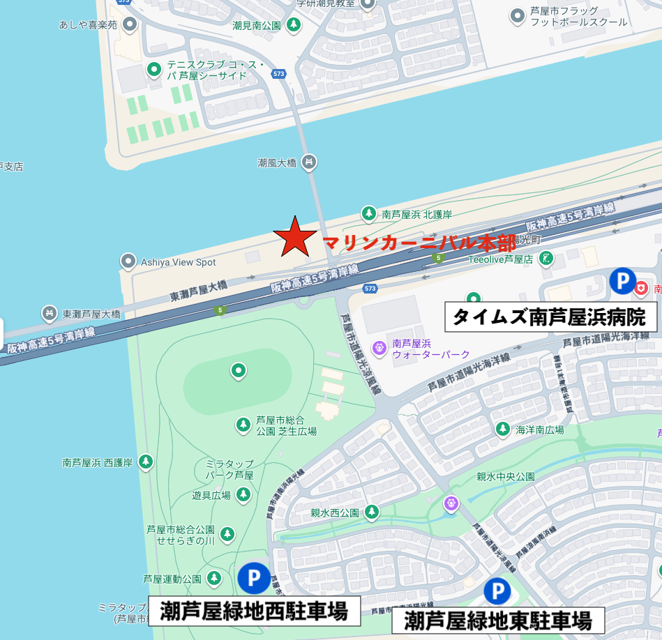 駐車場のご案内 Marine Carnival 2025 2025.12.01 マリンカーニバルの開催日に「芦屋総合公園」にて別のイベントが併催されます。駐車場が混雑し駐車できない事も想定されますので乗り合わせで来場していただいたり、周辺の駐車場をご利用いただくようにお願い致します。 潮芦屋緑地 西駐車場〒659-0037 兵庫県芦屋市南浜町1潮芦屋緑地東駐車場〒659-0037 兵庫県芦屋市南浜町1タイムズ南芦屋浜病院〒659-0034 兵庫県芦屋市陽光町3